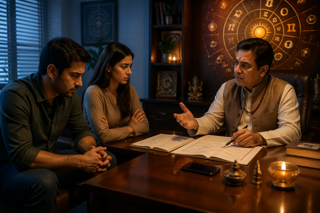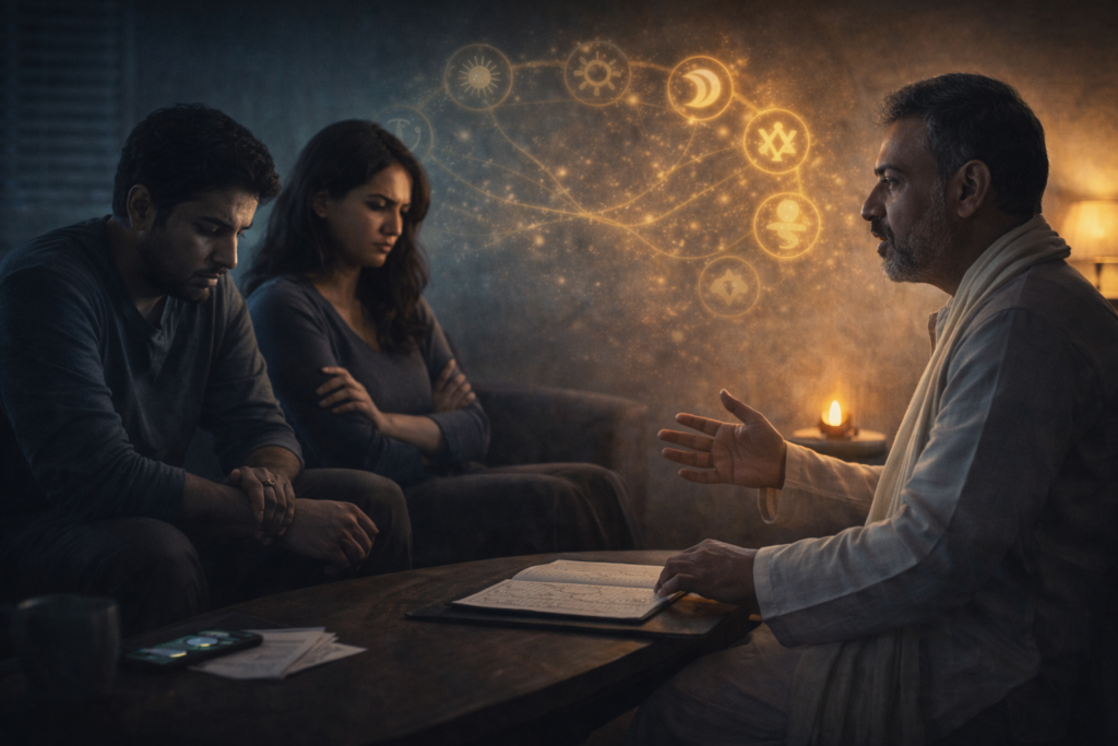 This is not generic horoscope reading. Devendra analyzes your individual birth charts, relationship combinations, and planetary imbalances to give specific, actionable guidance—not vague predictions.