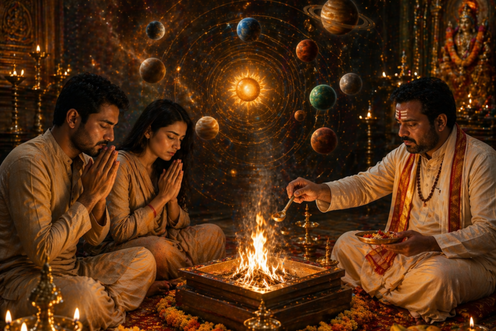 Navgrah Shanti Pooja is a structured Vedic process designed to balance the influence of all 9 planets affecting your life.